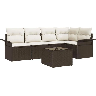 ManoManoGeneral description This Garden Sofa Set is designed for modern style and functionality, perfect for enhancing your patios, gardens, or terraces. Built to withstand spring and summer weather, the modular pieces can be easily reconfigured to suit various social settings. The UV-resistant poly rattan and powder-coated steel construction provide both elegance and durability against the elements. Technical specifications Material: Poly rattan Overall dimensions: 242.5 x 132.5 x 85 cm (L x W x H) Weight: 35.8 kg Seating area: 55 x 55 cm (W x D) Frame material: Powder-coated steel Indoor / outdoor: Outdoor only Number of items: 6 EAN: 8721158949547 SKU: 3345368 Compatibility and accessories Delivery contains: 1 x Corner seat 2 x Centre seat 2 x Arm sofa 1 x Table Installation Modular design allows for easy assembly and reconfiguration. Usage Ideal for outdoor gatherings, garden parties, or relaxing afternoons. Removable cushions with zippers for easy cleaning. Other information