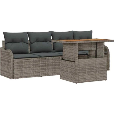 vidaXL 5 Piece Garden Sofa Set with Cushions Grey Poly Rattan Acacia