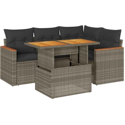 vidaXL 5 Piece Garden Sofa Set with Cushions Grey Poly Rattan Acacia