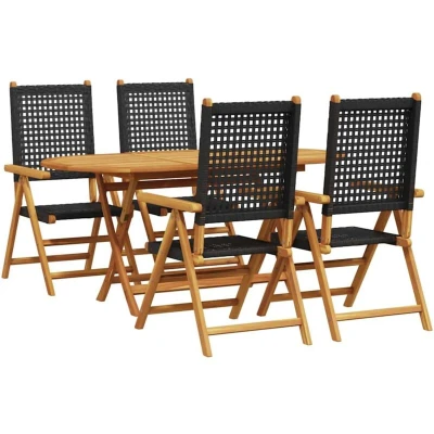 vidaXL 5 Piece Outdoor Dining Set Black Solid Acacia Wood and Poly Rattan