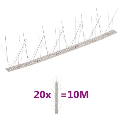 VidaXLThese bird & pigeon spikes will be ideal for protecting your house and garden from unwanted intruders, such as birds, cats, raccoons, etc. It is a humane, harmless, easily applicable and highly effective method of repelling birds. Thanks to the high-quality stainless steel, the bird control spike is weather-resistant and waterproof.