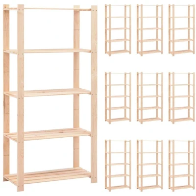 vidaXL 5 Tier Storage Racks 10 pcs 80x38x170 cm Solid Pinewood 250 kg