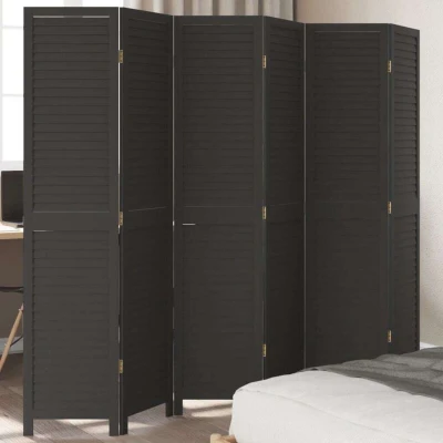 vidaXL 6 Panel Room Divider Black Solid Paulownia Wood, Flexible Folding Privacy Screen for Living Room/Bedroom/Office, 210x180cm