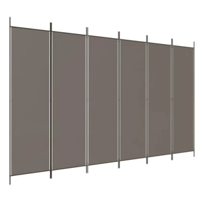 Create flexible and stylish spaces with this 6-panel anthracite room divider. Its foldable design and modern look make it perfect for homes, apartments, or offices where both privacy and décor matter. Space-Saving Foldable Design: Panels fold neatly for effortless storage and can be quickly redeployed, ideal for compact living areas or adaptable interiors. Durable & Breathable Materials: Made from high-quality 100% polyester with a sturdy iron frame, combining strength and ventilation for long-lasting performance. Effective Privacy Partition: Measuring 300 × 200 cm, the six-panel layout separates large spaces, providing discreet zones in bedrooms, living rooms, or offices. Multifunctional Utility: Use it to shield sunlight near windows or as a stylish backdrop, offering versatile functionality that enhances aesthetics and practicality.