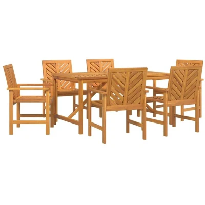 ManoManoGeneral description The Wooden Garden Dining Set is a lovely mix of function and straightforward style for your outdoor areas. With its minimalist vibe, it showcases clean lines and the natural charm of solid acacia wood, creating a look that fits right in with different garden environments. It’s perfect for hosting small, intimate meals, making for a lovely focal point wherever you set it up, whether that's a terrace or a garden—ideal for laid-back get-togethers or just some quiet time. Technical specifications Colour: Brown Material: Solid acacia wood Overall dimensions: 150 x 90 x 74 cm (L x W x H) Weight: 44.6 kg Frame material: Solid acacia wood Indoor / outdoor: Outdoor only Number of items: 7 (6 x Chairs, 1 x Table) Assembly required: Yes Maximum weight capacity: 110 kg per seat EAN: 8720845689346 SKU: 3154107 Brand: vidaXL Maintenance & Care Keeping it in shape is easy—just wipe it down with a damp cloth and protect it with covers when you’re not using it. This helps keep it