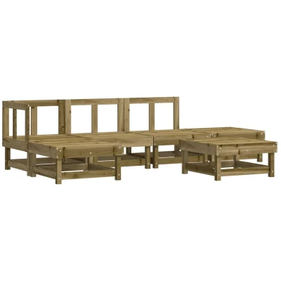 VidaXLThis wooden garden lounge set, standing out with the slatted design, will make a great addition to your garden, patio, or terrace for enjoying a cosy time with your family or friends. Impregnated wood: Solid pine wood is a beautiful natural material. Pine wood has a straight grain, and the knots give the material its signature, rustic look. Impregnation is a preservation process that is carried out by using autoclaves. The pressure-treatment increases resistance to decay and weather.Sturdy and stable frame: The wooden frames make the lounge set sturdy and stable for daily outdoor use.Modular design: The sofa set is flexible and easy to move around. You can combine it with other modular segments in the webshop to create your own personal garden lounge set configurations! Good to know:To make sure your outdoor furniture stays beautiful, we recommend protecting it with a waterproof cover.The cushions are not included in the delivery.
