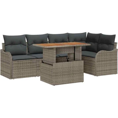 vidaXL 6 Piece Garden Sofa Set with Cushions Grey Poly Rattan
