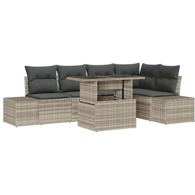 vidaXL 6 Piece Garden Sofa Set with Cushions Light Grey Poly Rattan