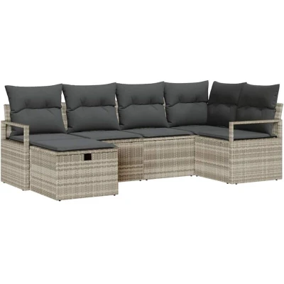 vidaXL 6 Piece Garden Sofa Set with Cushions Light Grey Poly Rattan