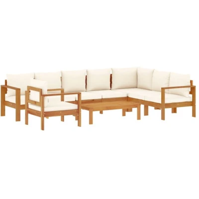 This garden sofa set is the perfect addition to your backyard, terrace, or patio, providing a comfortable and inviting space for chatting with family and friends or simply relaxing and enjoying the outdoors. Long-lasting material: Solid acacia wood is a beautiful natural material. Acacia wood is a tropical hardwood, which is dense, sturdy, and durable.Stable and easy-to-clean tabletop: This garden table has an acacia wood top that is sturdy, durable, and easy to clean with a damp cloth.Comfortable seat experience: This outdoor furniture, complete with thickly padded cushions, offers a comfortable seating experience. Removable and washable cover: These seat cushions feature removable covers for easy washing and maintenance.Modular design: This outdoor furniture set has a modular design, making it completely flexible and easy to move around, so you can create a customised outdoor furniture arrangement. Good to know:To make sure your outdoor furniture stays beautiful, we recommend protecting it with a waterproof cover.