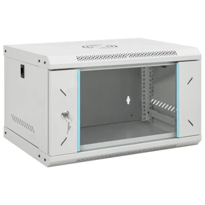 VidaXLThis 6U network cabinet is designed to be a great helper for keeping your network accessories in order. Solid structure: This data cabinet, featuring a solid structure, is made of premium cold-rolled steel, making it strong and durable to use. It is compatible with 19" standard equipment.Easy to maintain: The removable side panels make it easy to maintain network accessories.Lock device: Thanks to the included lock and key, the lockable front door prevents unwanted opening and keeps the items safe.Wall hanging design: You can either attach the cabinet to the wall or put it on the table.