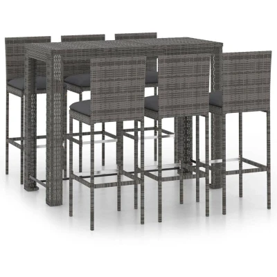 vidaXL 7 Piece Garden Bar Set with Cushions Poly Rattan Grey