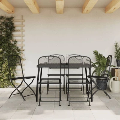 VidaXLEnjoy a nice meal or afternoon tea in your outdoor space with this garden dining set! Featuring an elegant design, it will become the focal point of your garden and patio! Sturdy frame: The metal frame makes this garden furniture set sturdy and durable, providing a lifelong service.Mesh design: This dining set, with the mesh design, can effectively avoid water accumulation, adding a stylish appearance to your outdoor living space.Practical tabletop: The sturdy tabletop of the garden dining table is perfect for placing meals, drinks, and other decorative items.Easy movement: These garden dining chairs are foldable to save space when not in use. You can easily carry them with you anywhere on your outdoor trips. Good to know:To make sure your outdoor furniture stays beautiful, we recommend protecting it with a waterproof cover.