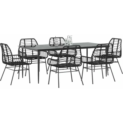 vidaXL 7 Piece Garden Dining Set Black Poly Rattan Glass