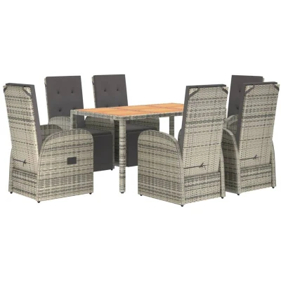 vidaXL 7 Piece Garden Dining Set Grey Poly Rattan&Solid Wood Acacia
