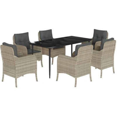 vidaXL 7 Piece Garden Dining Set with Cushions Light Grey Poly Rattan