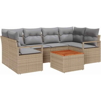 vidaXL 7 Piece Garden Sofa Set with Cushions Beige Poly Rattan Acacia