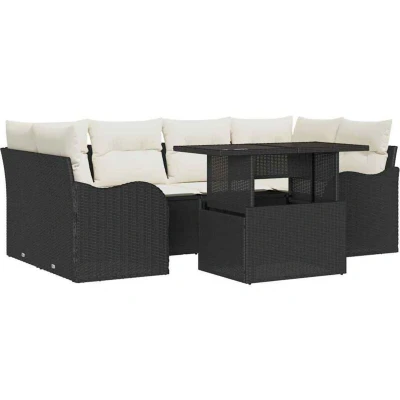 vidaXL 7 Piece Garden Sofa Set with Cushions Black Poly Rattan