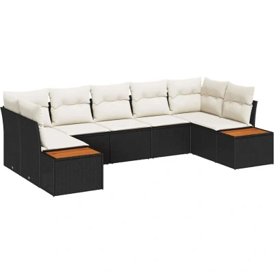 vidaXL 7 Piece Garden Sofa Set with Cushions Black Poly Rattan Acacia
