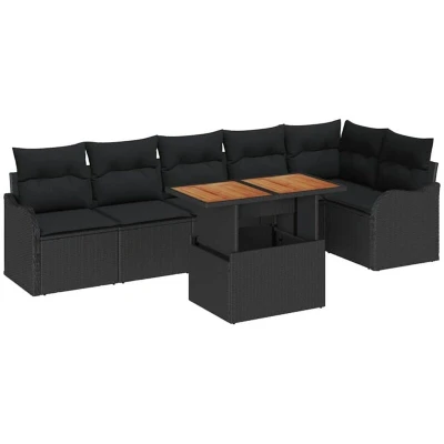 vidaXL 7 Piece Garden Sofa Set with Cushions Black Poly Rattan Acacia