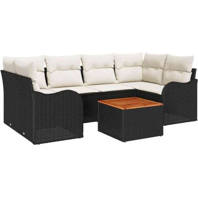 vidaXL 7 Piece Garden Sofa Set with Cushions Black Poly Rattan Acacia