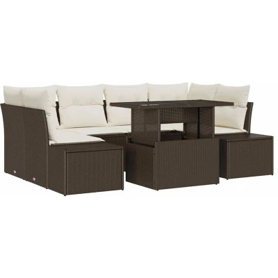 vidaXL 7 Piece Garden Sofa Set with Cushions Brown Poly Rattan