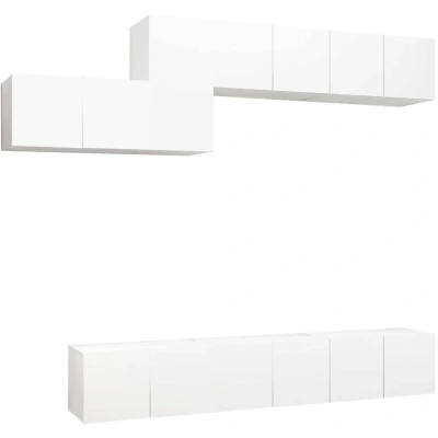 vidaXL 7 Piece TV Cabinet Set, Wall Mounted, White Engineered Wood Modern Design for Living Room or Bedroom Ample Storage Space