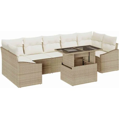 vidaXL 8 Piece Garden Sofa Set with Cushions Beige Poly Rattan