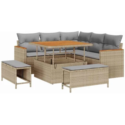 vidaXL 8 Piece Garden Sofa Set with Cushions Beige Poly Rattan Acacia