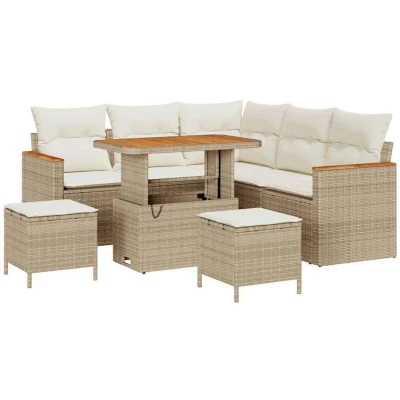 vidaXL 8 Piece Garden Sofa Set with Cushions Beige Poly Rattan Acacia