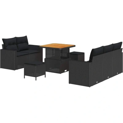 vidaXL 8 Piece Garden Sofa Set with Cushions Black Poly Rattan Acacia