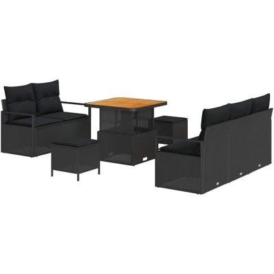 vidaXL 8 Piece Garden Sofa Set with Cushions Black Poly Rattan Acacia