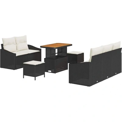 vidaXL 8 Piece Garden Sofa Set with Cushions Black Poly Rattan Acacia