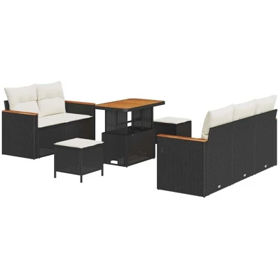 vidaXL 8 Piece Garden Sofa Set with Cushions Black Poly Rattan Acacia