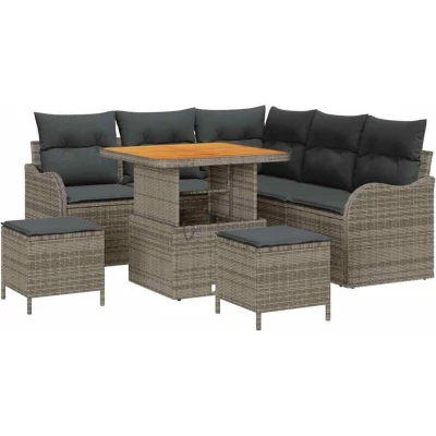 vidaXL 8 Piece Garden Sofa Set with Cushions Grey Poly Rattan Acacia