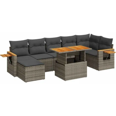 vidaXL 8 Piece Garden Sofa Set with Cushions Grey Poly Rattan Acacia