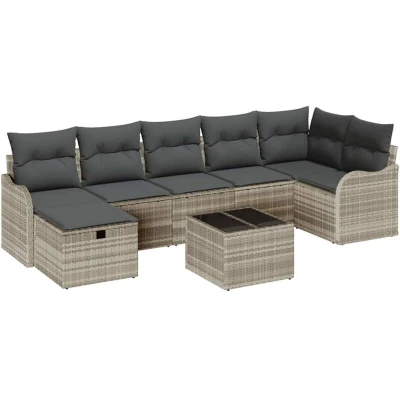 vidaXL 8 Piece Garden Sofa Set with Cushions Light Grey Poly Rattan