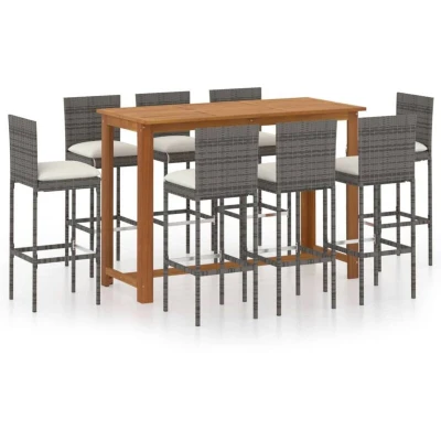 vidaXL 9 Piece Garden Bar Set with Cushions Poly Rattan Grey