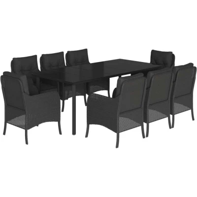 vidaXL 9 Piece Garden Dining Set with Cushions Black Poly Rattan