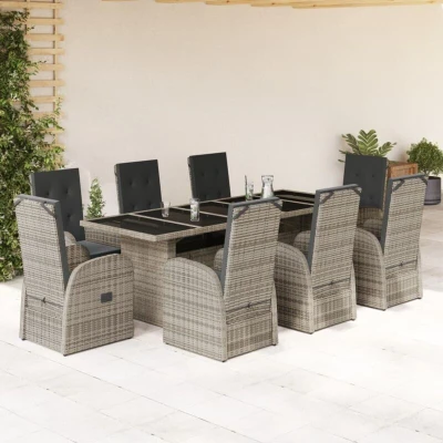 vidaXL 9 Piece Garden Dining Set with Cushions Grey Poly Rattan