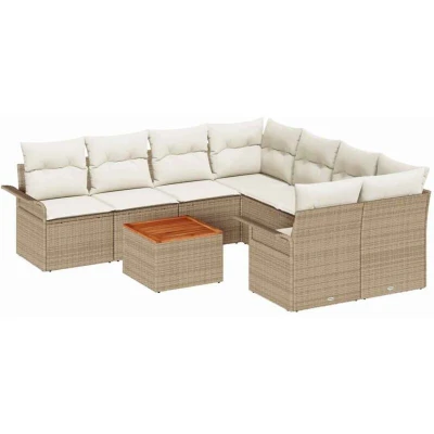 vidaXL 9 Piece Garden Sofa Set with Cushions Beige Poly Rattan Acacia