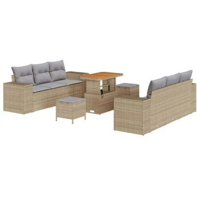 vidaXL 9 Piece Garden Sofa Set with Cushions Beige Poly Rattan Acacia