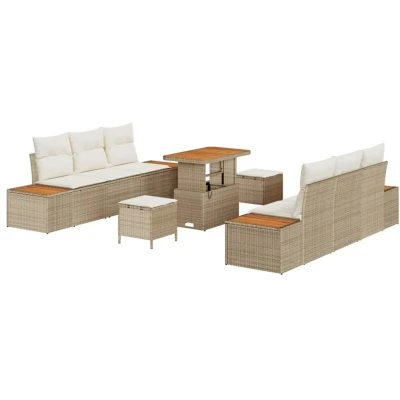 vidaXL 9 Piece Garden Sofa Set with Cushions Beige Poly Rattan Acacia