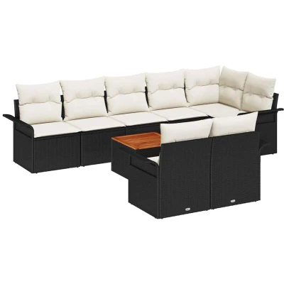 vidaXL 9 Piece Garden Sofa Set with Cushions Black Poly Rattan Acacia