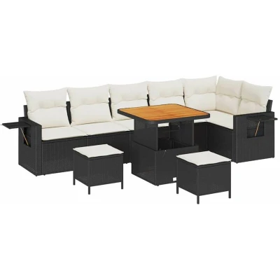 vidaXL 9 Piece Garden Sofa Set with Cushions Black Poly Rattan Acacia