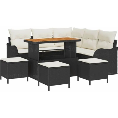 vidaXL 9 Piece Garden Sofa Set with Cushions Black Poly Rattan Acacia