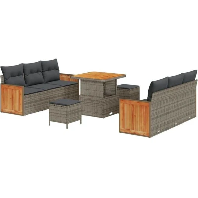 vidaXL 9 Piece Garden Sofa Set with Cushions Grey Poly Rattan Acacia