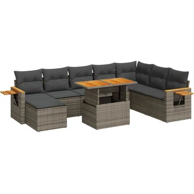 vidaXL 9 Piece Garden Sofa Set with Cushions Grey Poly Rattan Acacia