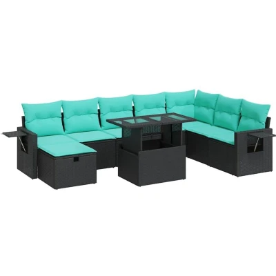This garden sofa set is the perfect addition to your backyard, terrace, or patio, providing a comfortable and inviting space for chatting with family and friends or simply relaxing and enjoying the outdoors.Durable material: PE rattan, also known as poly rattan, is a strong, low-maintenance synthetic material that looks like natural rattan. It's lightweight, easy to clean, and commonly used for outdoor furniture due to its durability and weather-resistant properties.Storage function with water-resistant bag: Each garden seat features storage space under the seat, complete with a water-resistant bag for storing cushions, toys, and other items. The inner bags have a top cover and can be securely fastened to the seats with hook-and-loop fasteners for added stability.Convenient side table: This outdoor furniture features a foldable side table with a gas spring, providing a convenient spot to keep your essentials within easy reach.Removable and washable cover: These seat cushions feature removable covers for easy washing and maintenance.Modular design: This outdoor furniture set has a modular design, making it completely flexible and easy to move around, so you can create a customised outdoor furniture arrangement.Good to know:To make sure your outdoor furniture stays beautiful, we recommend protecting it with a waterproof cover.