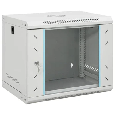 VidaXLThis 9U network cabinet is designed to be a great helper for keeping your network accessories in order. Solid structure: This data cabinet, featuring a solid structure, is made of premium cold-rolled steel, making it strong and durable to use. It is compatible with 19" standard equipment.Easy to maintain: The removable side panels make it easy to maintain network accessories.Lock device: Thanks to the included lock and key, the lockable front door prevents unwanted opening and keeps the items safe.Wall hanging design: You can either attach the cabinet to the wall or put it on the table.